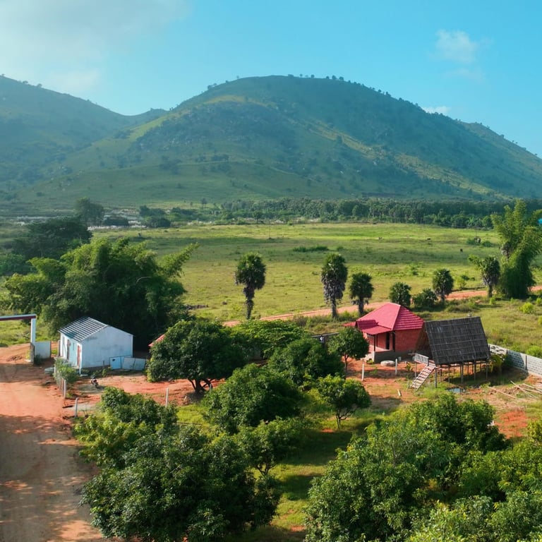 Experience sustainable living amidst nature with our eco-friendly farmhouse plots designed for comfort, serenity, and a greener tomorrow.